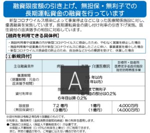 『新型コロナウイルスの感染症の影響を受けた福祉・医療関係施設に対して、無担保・無利子で経営資金・長期運転資金の融資を行っております』